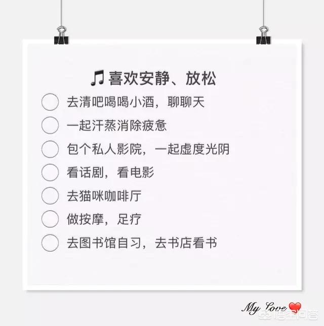 一句话总结:恋爱中没有那么多to do list。你用心去陪伴对方。陪对方做喜欢的事情。自然而然地。舒舒服服才是真。