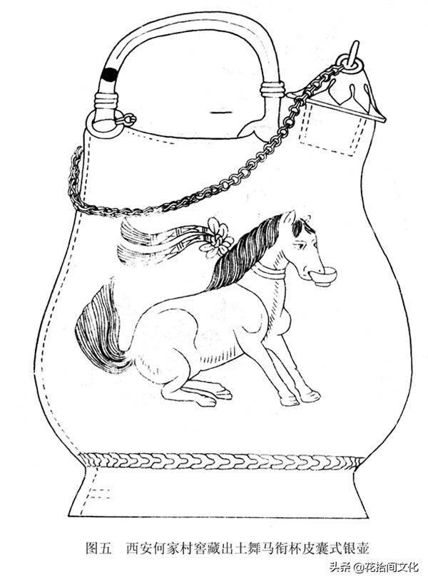 陕西何家村出土的唐舞马衔杯纹银壶上的五花马图像也有可能是五花马