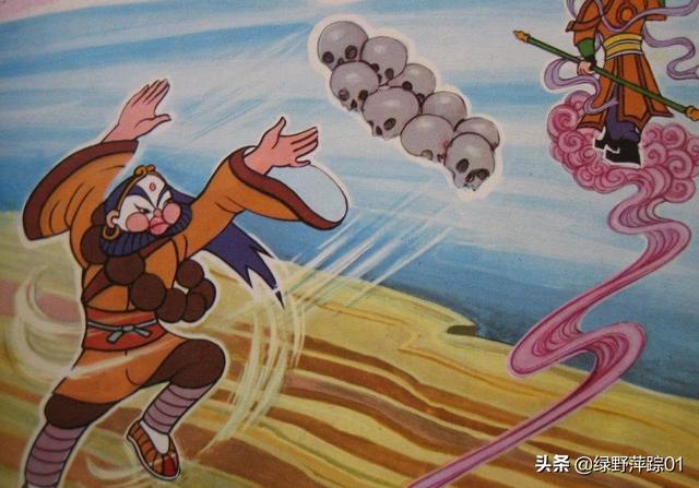 大家看看这个深沙身。他的身形高大。最为重要的。是在他的脖子。同样挂着几个骷髅头。而沙和尚的形象也是如此。