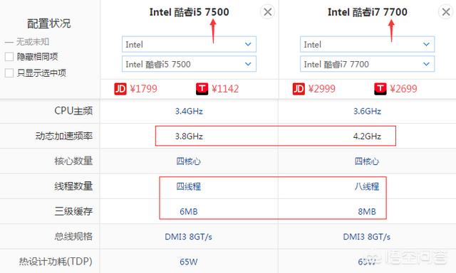 OK。既然知道了英特尔处理器的命名规则。那么就容易区分处理器是几代的产品了。只有用同代的产品作为比较。才是有愿意的。下面我就选了3组i5、i7的处理器来进行比较: