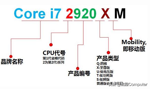 第一代英特尔酷睿i系列采用3位数加字母后缀的形式。第二代以后则是4位数字加字母的形式。