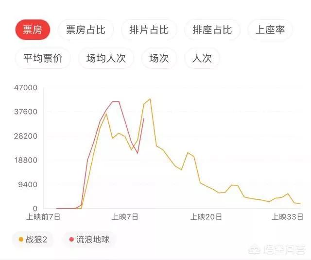 而《战狼2》在上映第11天(8月6日)。票房刚好达到日峰值3.9亿元。 相当于《战狼2》正值巅峰的时候。《流浪地球》已经在下滑了。