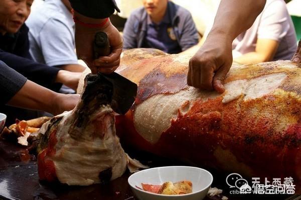 猪宰杀后。在水井边用稻草或麦杆均匀地盖住。点火烧烤肥猪。一人用簸箕煽风。以风助火。一人用棍子不时地根据火势拨动草秆。或者添加草秆。让火将整头猪均匀的烤成焦黑。然后用井水冲洗猪体。并用杀猪刀将焦黑的毛皮刮去。再冲洗干净。这样一来。经过刮洗的肥猪整体呈诱人的金黄色。并散发出一股股烤肉的香味。最后进行开膛破肚。将肥猪分割成若干块。待烹调食用。这就是白族人民的“火烧猪肉”。