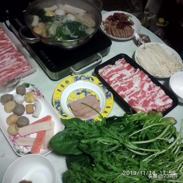 因为感觉自己还能吃点辣。那就来了个中辣的鸳鸯锅。上面提到的原料一样没少都来了一遍。还点了一个胖头鱼的鱼头。