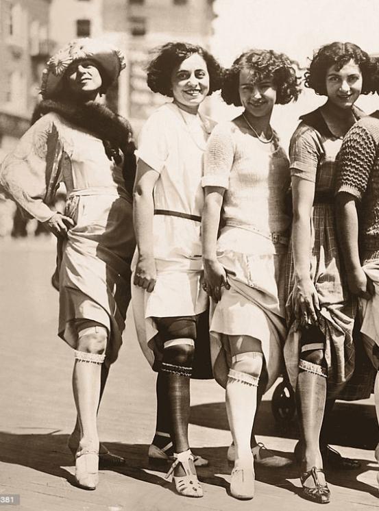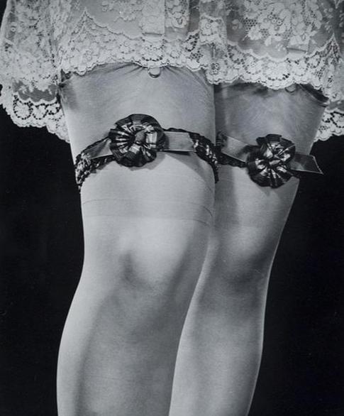 在缺乏橡胶材料和高弹尼龙的情况下。丝袜必须依靠吊袜带扎住。