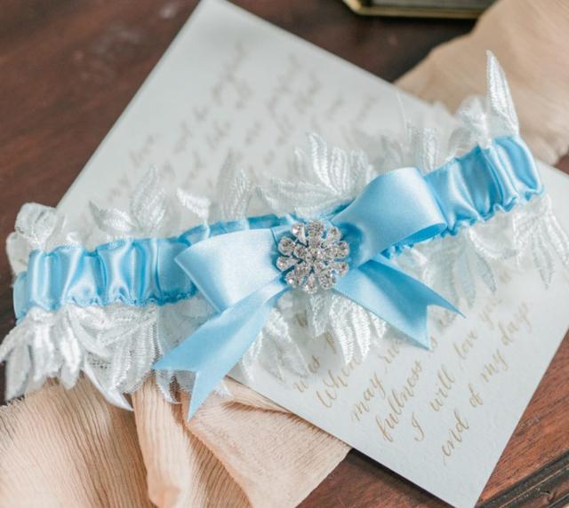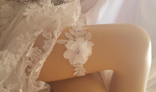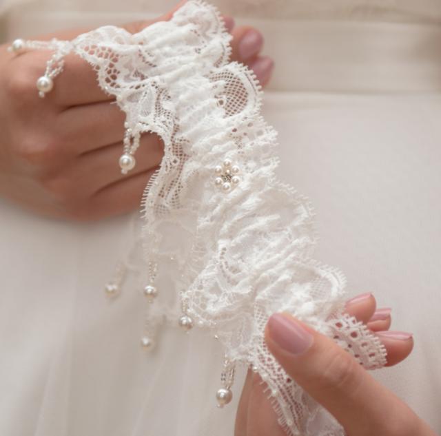 现代很多正儿八经的西式婚礼。不管脱不脱吊袜带。它都是婚纱中需要搭配的重要部分。新娘必备装饰。