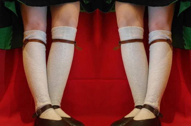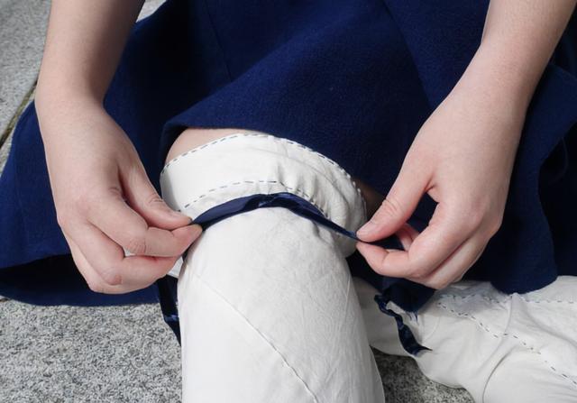 当丝袜被传给了女人以后。这种捆扎膝盖的做法也被流传了下来。