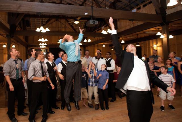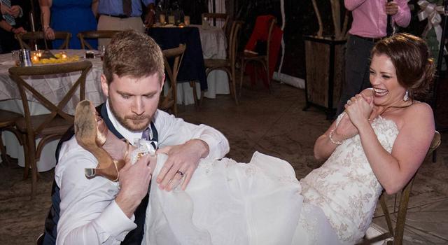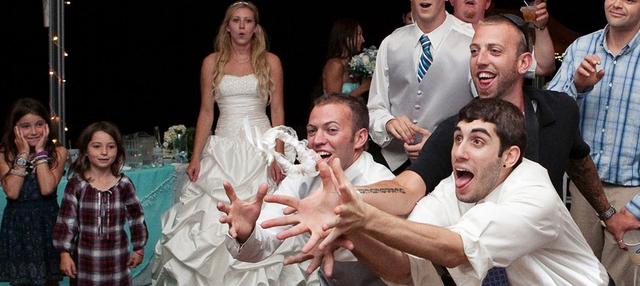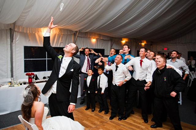 据说。谁扔出一只挂住新娘或新郎鼻子的袜子。谁就会是下一个结婚的人。