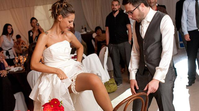 当新郎从新娘身上取下吊袜带时。这代表着新娘放弃了她的童贞。