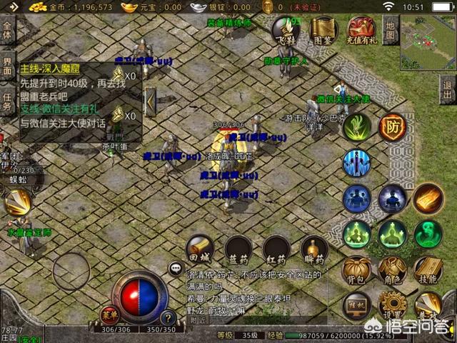 再说说法师。法师诱惑怪物也很强悍!13级就可以在龙城虎卫堂诱惑虎卫;26级可诱惑半兽勇士。28级可诱惑巨型多爪虫。29级可诱惑钳虫。31级可诱惑牛头魔。38级可诱惑普通天狼蜘蛛。装备邪魔印并高于怪物等级后可诱惑普通和极品沃玛勇士各一只。装备邪灵印等级到33级后可诱惑500红野猪和黑野猪各一只。装备嗜灵印等级到43级后可诱惑1000极品卫士和弓箭手各一只。所以法师级别上去之后凶得很!注册好账号。选择好自己喜爱的职业。进入游戏之后。会发现自己是处于“巫山城”。这个是新手地。也是主城之一。上线人物等级为1级。此时想升级可以有两个选择:1、可以点击自动战斗。角色会在主城附近自动寻找鹿、牛、鸡这样的新手怪物进行攻击。大概10分钟就可以到16级;2、找到坐标115、189处的NPC“钱庄”。点击对话后。有个每日收集任务。领取任务你会发现。这个任务很简单。主要是去武器店或者首饰店买一些商店货来交。完成之后给大量绑定金币和一些经验。