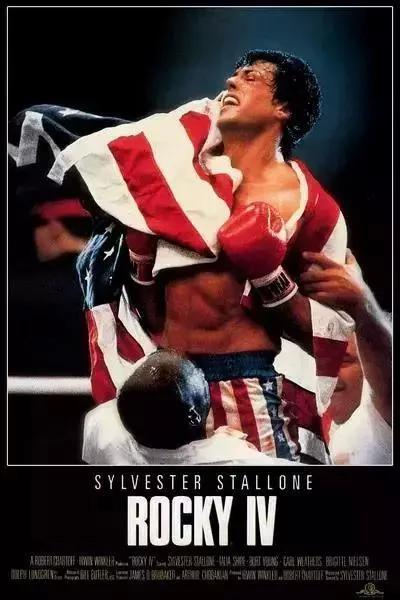 比如史泰龙主演的《洛奇4》。海报就是一个美国拳击手披着星条旗的形象。影片剧情也是服务于美苏争霸期间的政治宣传。讲述史泰龙饰演的美国拳击手打败苏联拳击机器人的故事。
