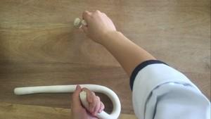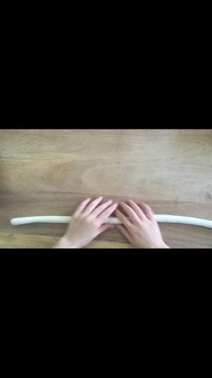 搓条:双手放在面团上由内往外的推搓、使面团滚动起来、搓条要均匀!