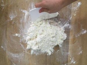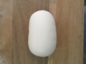 2.待作法2表面呈现光滑并成糰后。用干净的湿布将面糰包好并静置约10分钟。再将搓揉约1分钟。