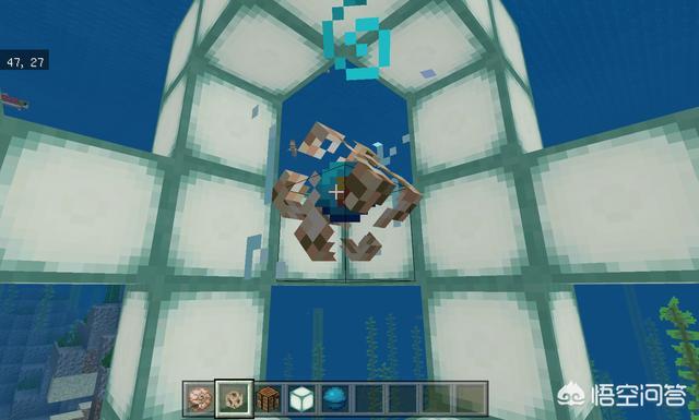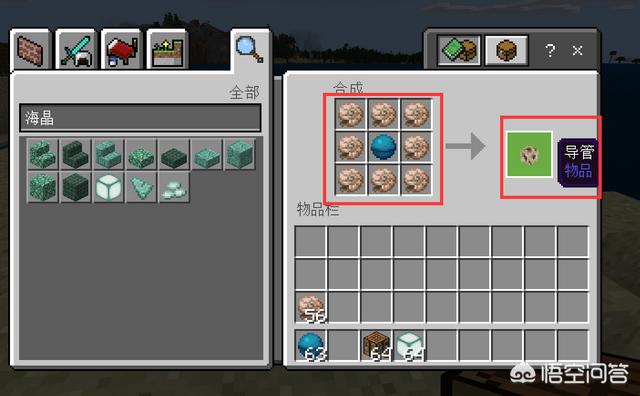 不过前提是你已经获得了42个海晶灯、海晶石、暗海晶石这三种建筑方块之一。使用这些方块搭建出一个镂空的正方体出来。然后在这个正方体中间放上导管就可以激活“潮涌之心”系统。