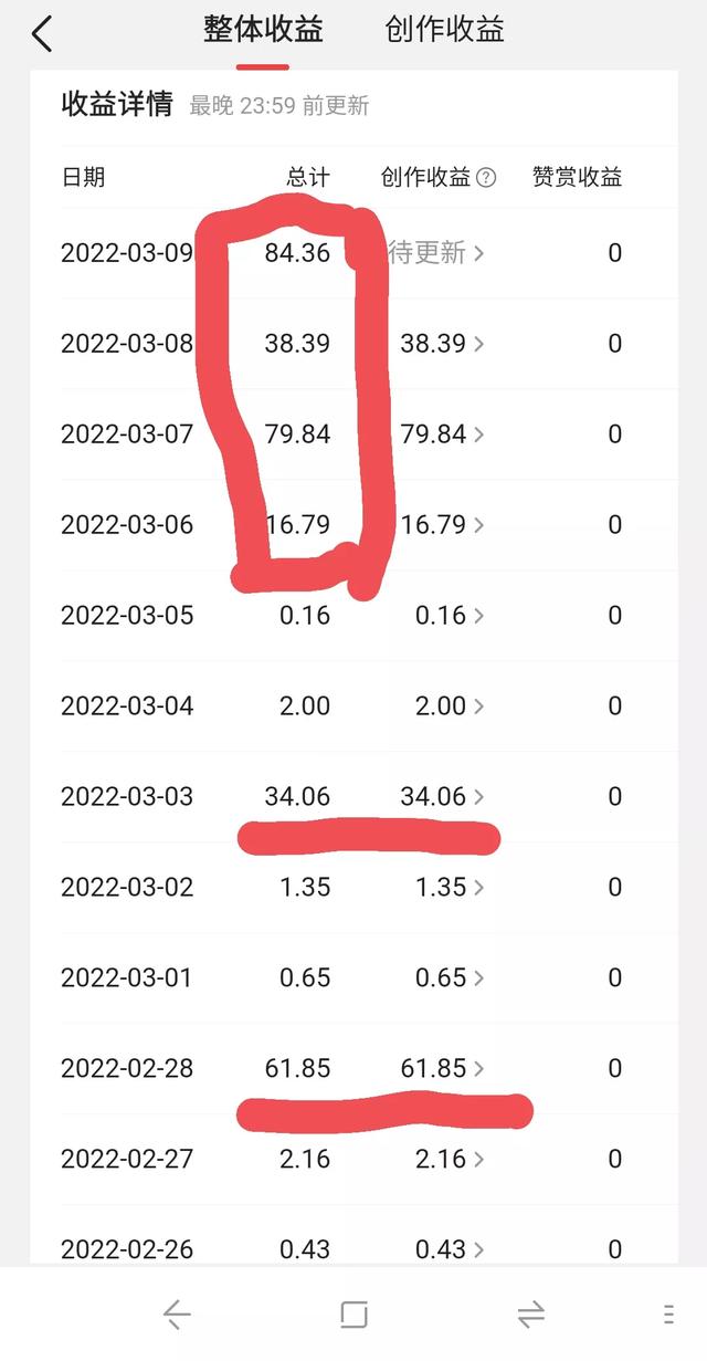 最近这两三年。虽然有时偶尔几天也存在断更的现象。但是总的来说。我都坚持下来了。收入虽然不是太稳定。但是一直有。看到这些收入。无论高低。自己还是挺开心的。