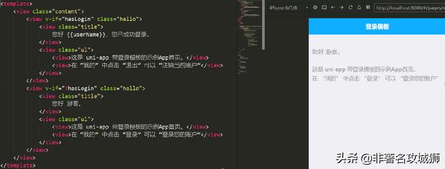 上图代码是uni-app登陆模版项目里面的。可以看出来。用的就是Vue的template模版开发。