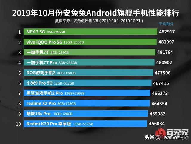 总体来看。这次安兔兔的性能榜单还是比较公允的。虽然华为一款手机都没有上榜。但小米也只有小米9 Pro和Remi K20 Pro入帮。而vivo NEX 5G、iQOO Pro 5G、一加7T系列、OPPO Reno Ace等。都是最近上市的新机。又都主打性价比。硬件性能强悍是理所当然。而随着5G完全版的华为Mate 30 Pro上市。11月份的安兔兔榜单应该就有华为的一席之地了。