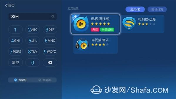 优酷TV APP是为AndroidTV用户设计开发的网络视频客户端产品。通过专门为遥控器设计的人机交互界面。优酷拥有海量节目资源。前端符合用户使用习惯。可适配各个家庭的智能电视以及电视盒子。优酷TV在内容上与PC端、移动端打通。优酷TV可以播放海量超清剧集。无论任何时间、任何地点、任何网络运营商。优酷TV APP能为用户提供清晰、流畅的超清观影体验。以上几款软件都可以通过沙发管家客户端一键安装。比如要安装“电视猫”。只需要搜索“DSM”即可看到结果。
