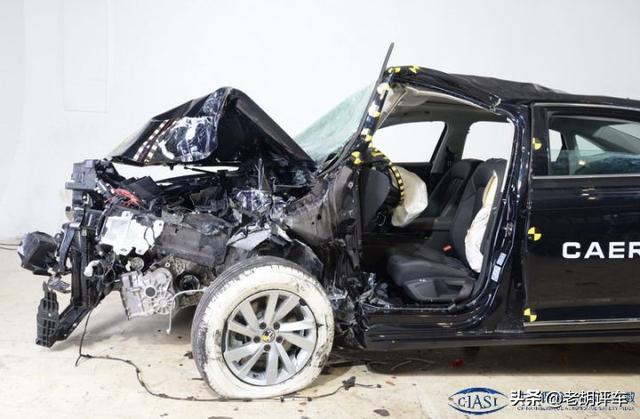 再看看卖二十多万的帕萨特。同样碰撞A柱都断成啥样了……