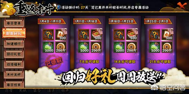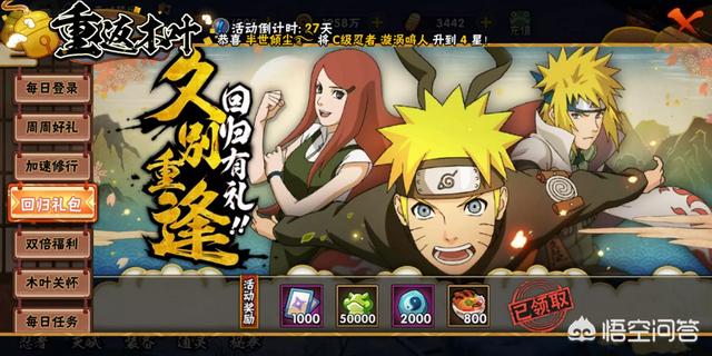 小酱去年有事退坑了火影。前几天回归了 我们来看看回归有什么活动礼包