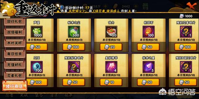 直接领取(1000修行点、5万声望、2000忍玉、800体力)