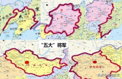按照驻防区域。清朝一共有盛京、吉林、黑龙江、绥远、江宁、福州、杭州、荆州、西安、宁夏、伊犁、成都、广州、乌里雅苏台14位驻防将军。其中在盛京将军、吉林将军、黑龙江将军、伊犁将军、乌里雅苏台将军驻防区域内没有设立总督或者巡抚。这五位将军实际管理区域内一切事务。相当于驻防将军兼总督。位高权重!