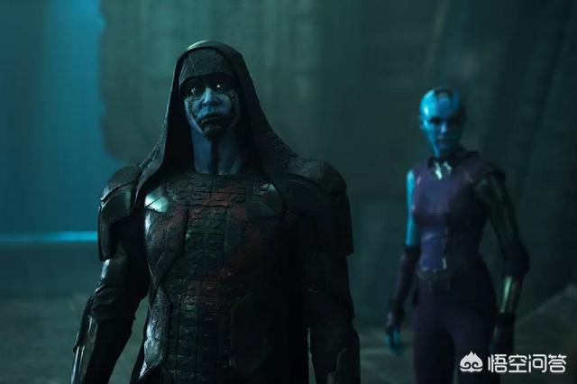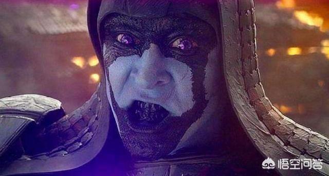 不。不是这样。首先要明确一点。《惊奇队长》的时间在《银河护卫队1》之前。那时罗南长这样。蓝色也是罗南皮肤本来的颜色。