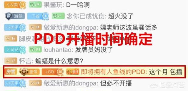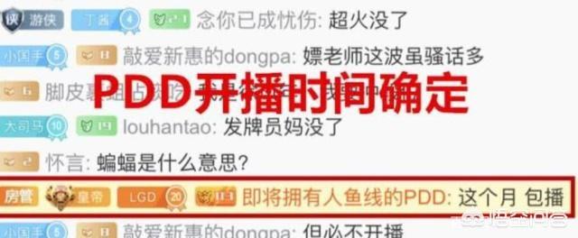 PDD虽然停播。但是在最近的一年里却经常露面在斗鱼TV。很多网友也纷纷猜测斗鱼就是PDD的下一站。前段时间芜湖大司马在PDD家开直播就证实了这一点。没有疑问的话。PDD将会在斗鱼与大家见面。而这一点也被他本人所证实!PDD在直播间中表示:“这个月。包播”。PDD在直播界消失已久。已经失去了很多的粉丝。虽然一直在网络上保持活跃。单平台累积的粉丝已经消散一空。重新凝聚想必还需要耗费一些时间。