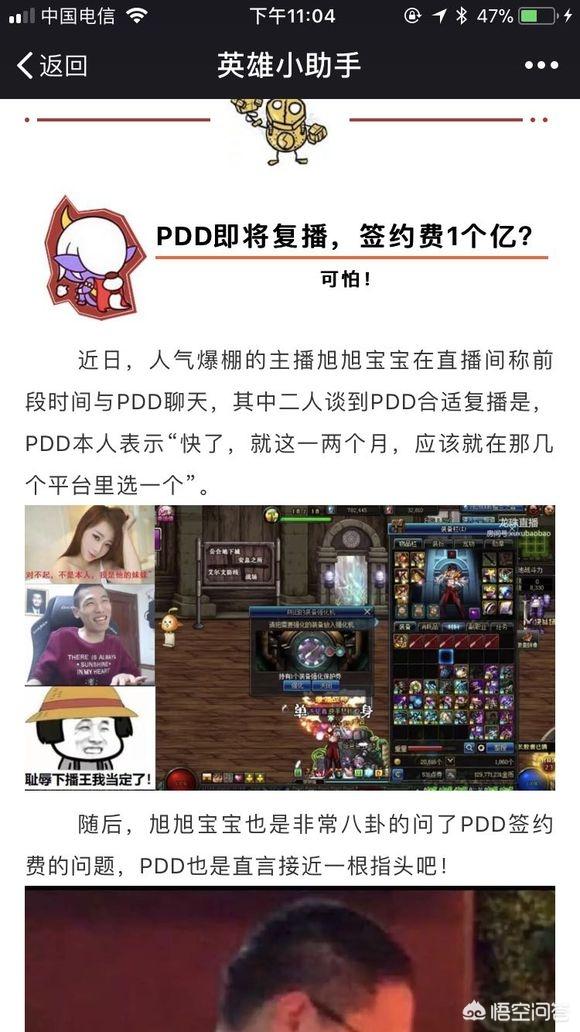 pdd之前是签约的熊猫。但是最近已经很长时间没有直播了。很难让人不去想象它是在联系一下一家直播平台。