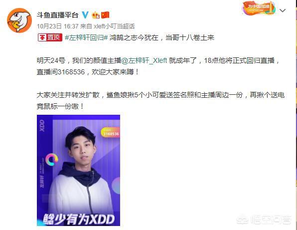 前段时间很多主播都停播了。比如XDD、可杰、北慕、李知恩等等。他们都是涉及“未成年主播”问题而被迫暂时停播。不过斗鱼官博21号发布的消息却表明XDD要回归了!
