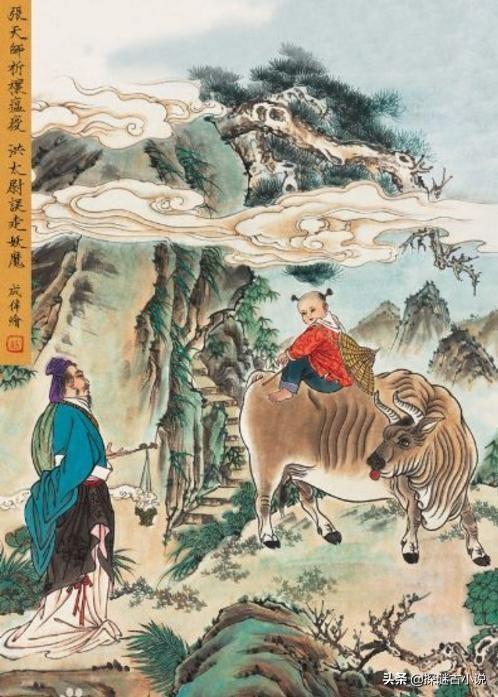 洪太尉奉天子之命去龙虎山请张天师入朝祈禳。屡遭凶险波折后。在山凹处遇到一个骑牛吹笛的小道童。便问可知张天师在何处。道童笑了一声。也不回应。吹着铁笛。转过山坡去了。洪太尉到达山顶道观。说起来时经历。道士告诉他:“太尉可惜错过。这个牧童。正是天师。”