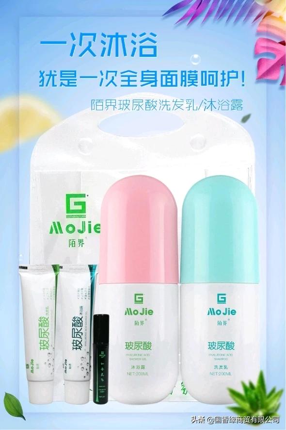陌界玻尿酸洗护套装。非常惊奇的功效、赠品搭配也是一绝。套装搭配有200mL玻尿酸洗发乳、200mL沐浴露、10mI软管体验装、一支幻想型香水、一个很漂亮的透明袋子。