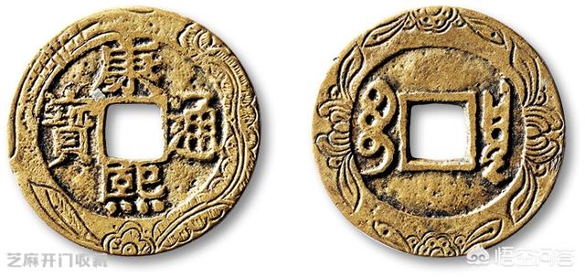 3、康熙通宝罗汉钱上的康子第八笔是圆点。熙中的臣子左边少了一个竖;