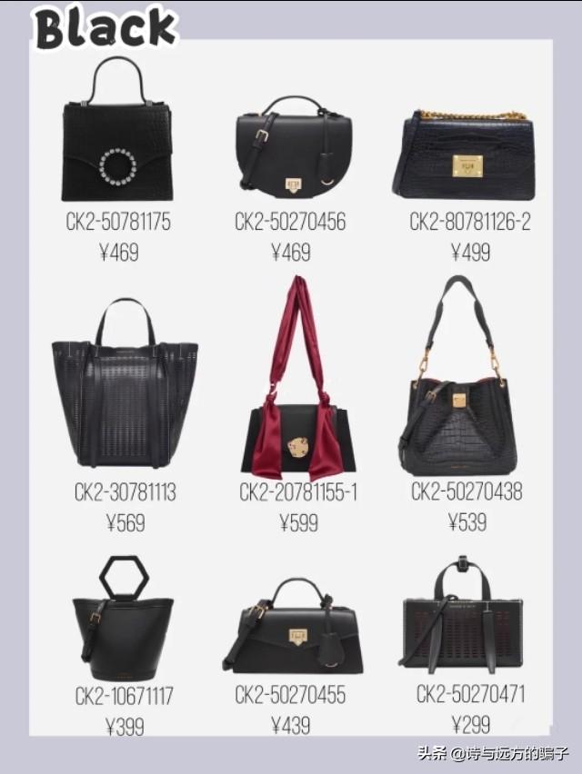 小CK:小CK在国内是价格是比较低的。基本上都是在500元以内的。我觉得就是非常受学生党和普通上班族所喜爱的。价格亲民。不例外。我自己就有两个小CK的包包。它更加小众一些。