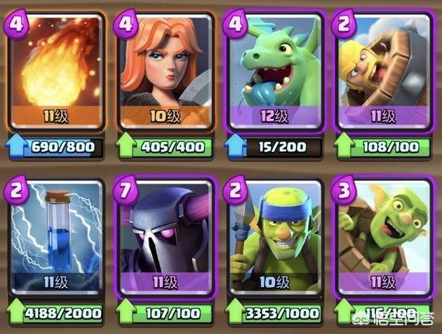 2、组适合自己当前卡等的卡组。优先选择高等级卡。aoe。单体卡。小怪要均衡。目前建筑物不强。带的人很少。