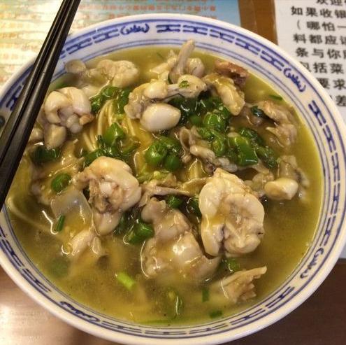 上海人嗜牛蛙。更嗜面。两种风马牛不相及的食材碰在一起就有了牛蛙面。照片是我亲自拍的。汤汁浓厚。牛蛙肥美。从图上就能看出是良心店家。牛蛙铺的都看不到面。牛蛙面在上海最火的是哈灵面馆。两家吃下来我强推富贵。无论味道还是环境都比哈灵强太多了。