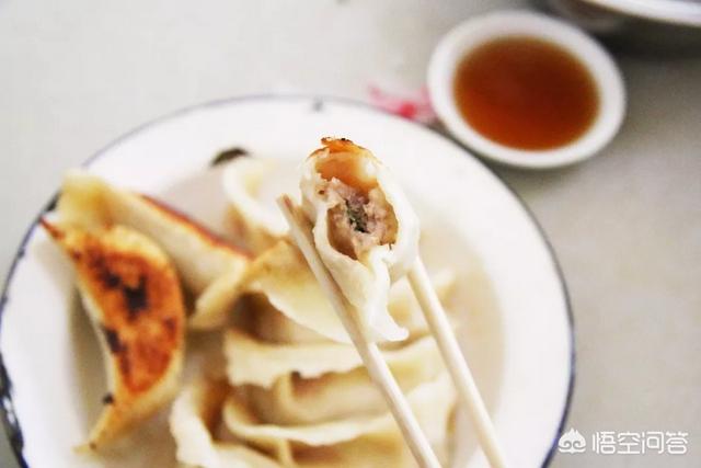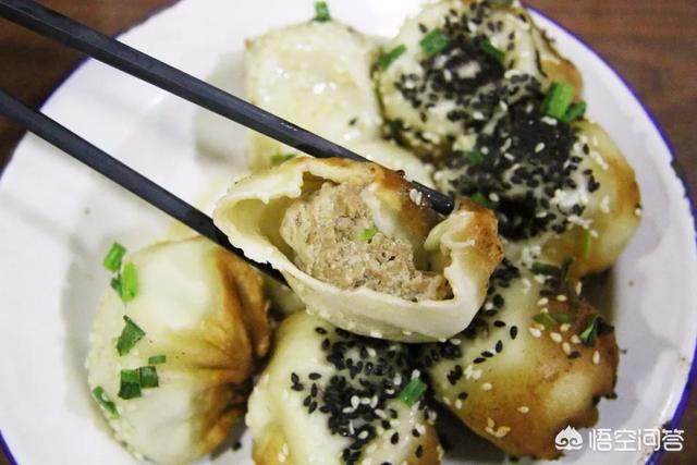 锅贴底部煎得焦脆。肉馅咸香无比。