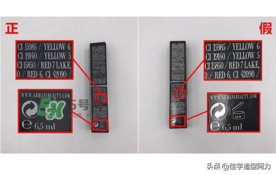 从印刷上看阿玛尼红管唇釉真假同样的还是字体和颜色的问题。正品印刷较细。假货比正品较白~