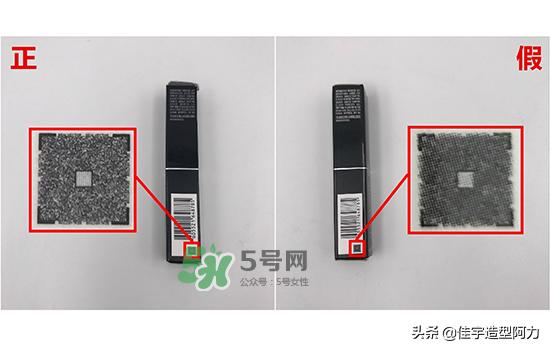 从二维码上看阿玛尼红管唇釉真假包装侧面条码旁类似二维码的小正方形。正品印刷清晰。放大100倍依旧清晰。假货十分模糊。