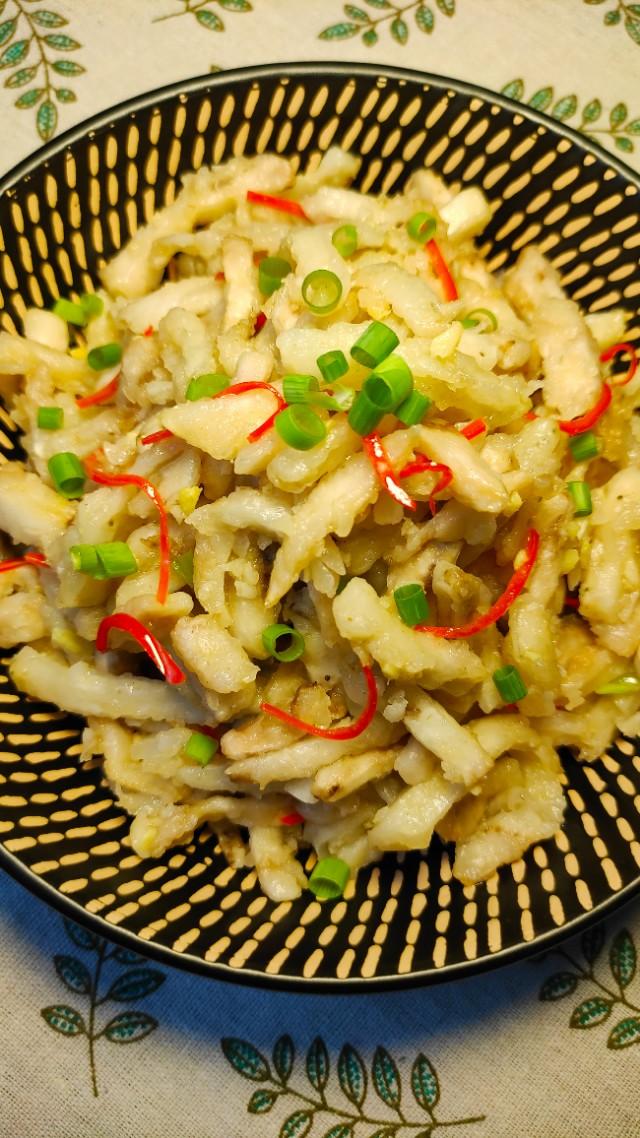 第五步:调和蒜姜汁。平时家庭版就可以。蘸着吃。也可以直接把调好的蒜姜汁和蒸好的茄丝一起翻拌均匀即可。