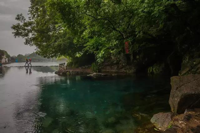 “远眺镜湖长流水。不知珠泉藏崖间”。珍珠泉藏于不起眼的山崖之下。喷珠、珠雨、喜客。一泉三景甲天下。