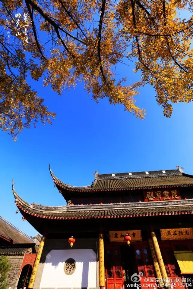 一座栖霞山。半部金陵史。深秋的栖霞山。看那满山漫坡。如霞如锦的红叶奇景。山中有个千年古刹。名叫栖霞寺。祈福还愿。拜拜舍利塔。看看百年银杏树。