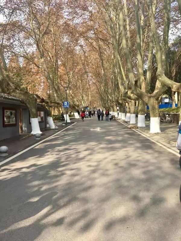 园区里小路回环曲折。行道树在冬日的暖阳里笔直的竖立着。旁边还有一家南京小有名气的青旅——心之旅。