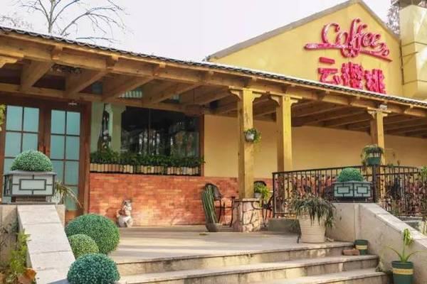 园区的主干道的梧桐树后还藏着一家咖啡馆。叫云樱桃咖啡。开在一所黄色民国建筑内。一眼就看见木格的玻璃门。有一种十足的民国年代感。