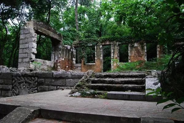 桂林石屋被划入灵谷寺公园景区。原为国民政府主席林森的别墅。现在却早已成了一片废墟。它东望灵谷塔。西临藏经阁。草木繁盛。有种静谧之感。