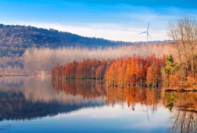 秋日的竹镇。最值得一去的当然是止马岭。成片成片的池衫林。满目是美景。遍地是秋色。景区千年黄栋树、百年板栗林。池杉林更是景中一绝。当年种下的池杉已在水中成林。成了今天的奇观。