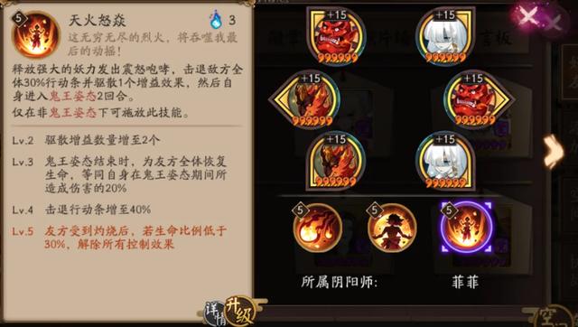 满级之后。友方生命降低到30%以下。会免疫所有控制效果。这个就很变态了。同时这个点也是我方行动单位的最佳输出时期!鬼王姿态结束后友方全体回血!