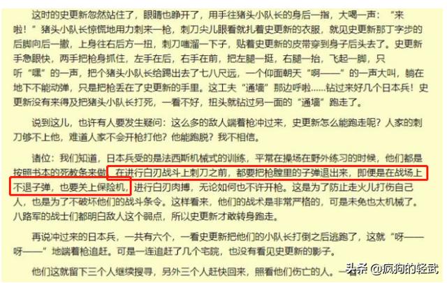 “日军三八大盖穿透力强。拚刺刀时敌我混杂。日军怕开枪误伤自已人。所以拚刺刀时退子弹。”这里我就不想说什么。