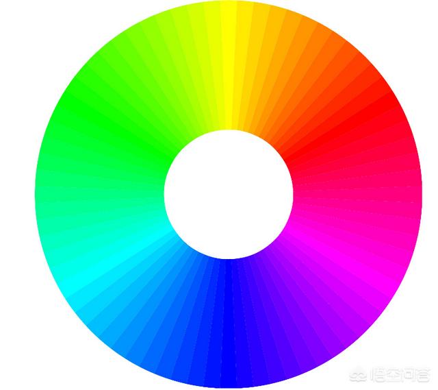2、色轮上相对的颜色叫做互补色。我们刚才推倒的黄色+蓝色=白色。绿色+洋红=白色。青色+红色=白色中。黄色和蓝色、绿色和洋红色、青色和红色就是互补色。在色轮上出现在各自颜色对面的位置。互补色由于色彩差异大能造成反差。所以视觉效果很强烈。如绿色和红色。