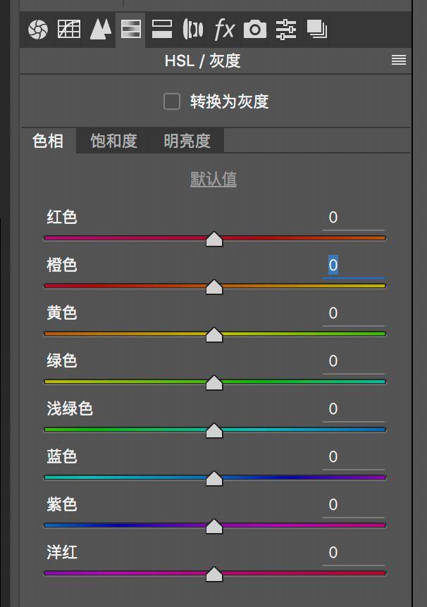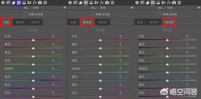 这个是Photoshop ACR 中颜色调整的界面。颜色三元素:色相、饱和度、明亮度。我们点击色相。